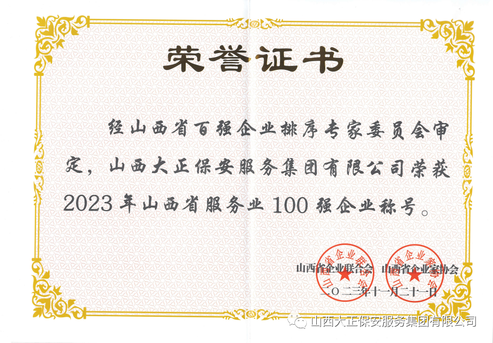 山西大正保安服務(wù)集團(tuán)有限公司作為市屬唯一一家國有安保企業(yè),22年來緊緊圍繞強(qiáng)企興企第一要務(wù),把握時代發(fā)展機(jī)遇,積極貫徹新發(fā)展理念,主動擔(dān)當(dāng)作為、認(rèn)真履職盡責(zé),不斷提升服務(wù)水平,努力推動建設(shè)國內(nèi)一流綜合型保安服務(wù)集團(tuán)的步伐,在國企黨建、內(nèi)部管理、經(jīng)營業(yè)績、企業(yè)文化、安全生產(chǎn)、履行社會責(zé)任等方面不斷規(guī)范推進(jìn),連續(xù)9年榮獲“山西省服務(wù)業(yè)企業(yè)100強(qiáng)”,展現(xiàn)出山西大正保安集團(tuán)由小變大、由弱變強(qiáng)的奮進(jìn)歷程,創(chuàng)造了山西大正保安集團(tuán)全方位高質(zhì)量發(fā)展的新偉業(yè)。