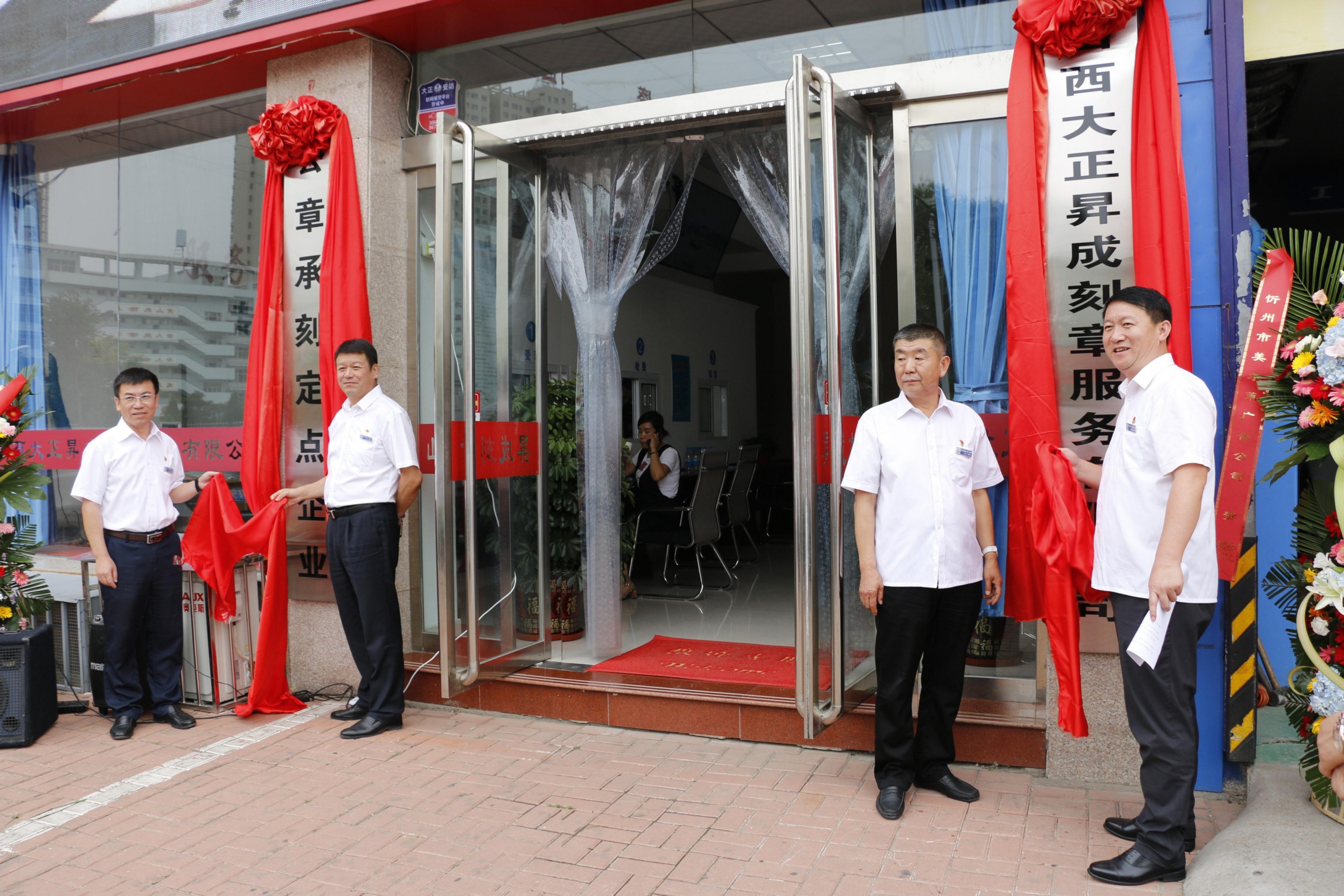 7月8日,集團公司旗下子公司山西大正昇成刻章服務(wù)有限公司揭牌儀式隆重舉行。集團公司黨委書記、董事長張躍生,黨委副書記、副總經(jīng)理陳志平,黨委委員、副總經(jīng)理趙培宏,黨委委員、后勤服務(wù)中心主任邢春生共同為山西大正昇成刻章服務(wù)有限公司揭牌。