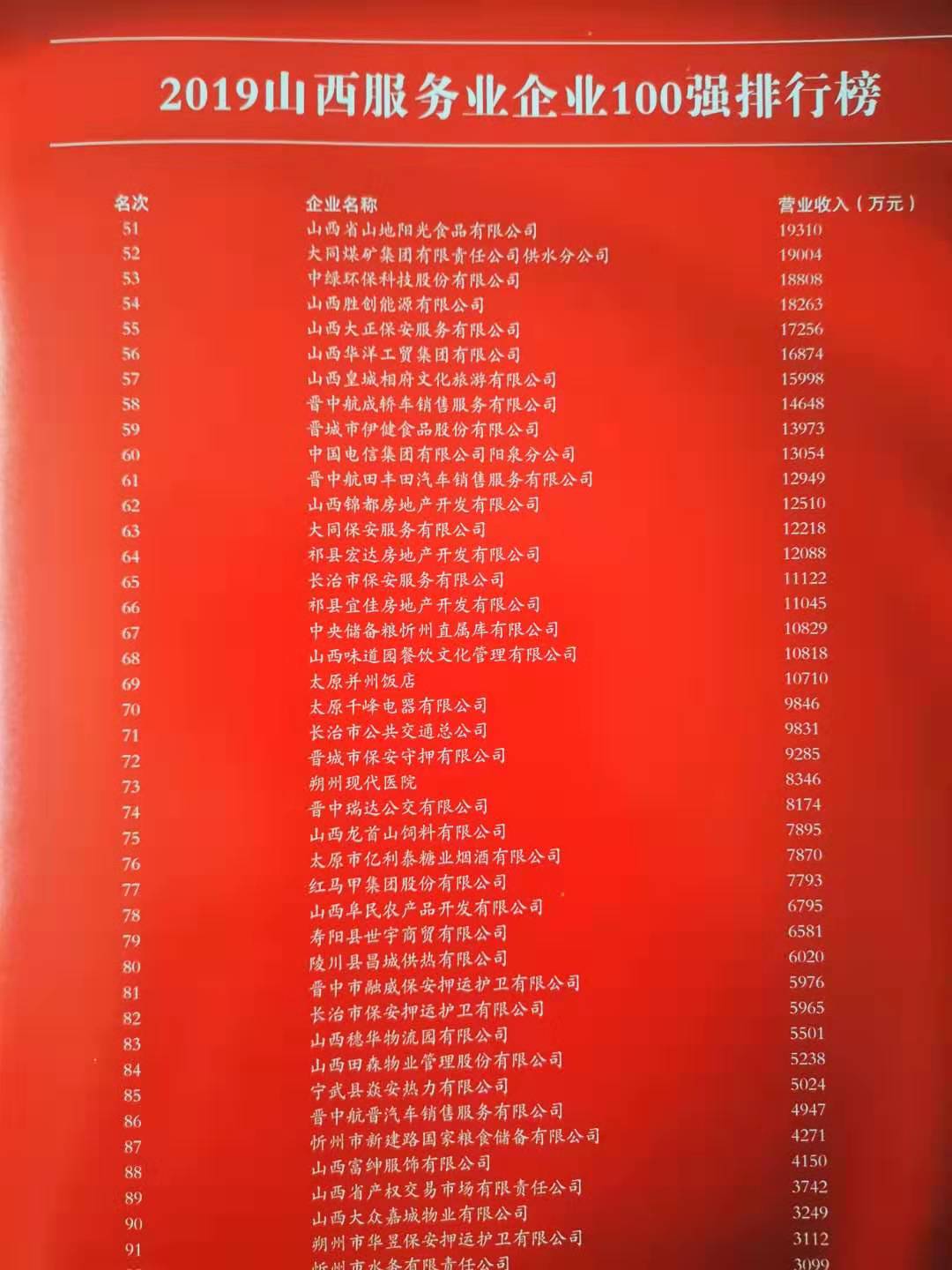 11月8日,2019山西企業(yè)100強(qiáng)在省城太原發(fā)布。經(jīng)山西省百?gòu)?qiáng)企業(yè)排序?qū)<椅瘑T會(huì)審定,山西大正保安服務(wù)有限公司再次榮獲“山西省服務(wù)業(yè)100強(qiáng)企業(yè)”,這是該公司自2014年以來(lái)連續(xù)五次榮登該榜。公司黨委副書(shū)記、副總經(jīng)理陳志平前往參會(huì)。