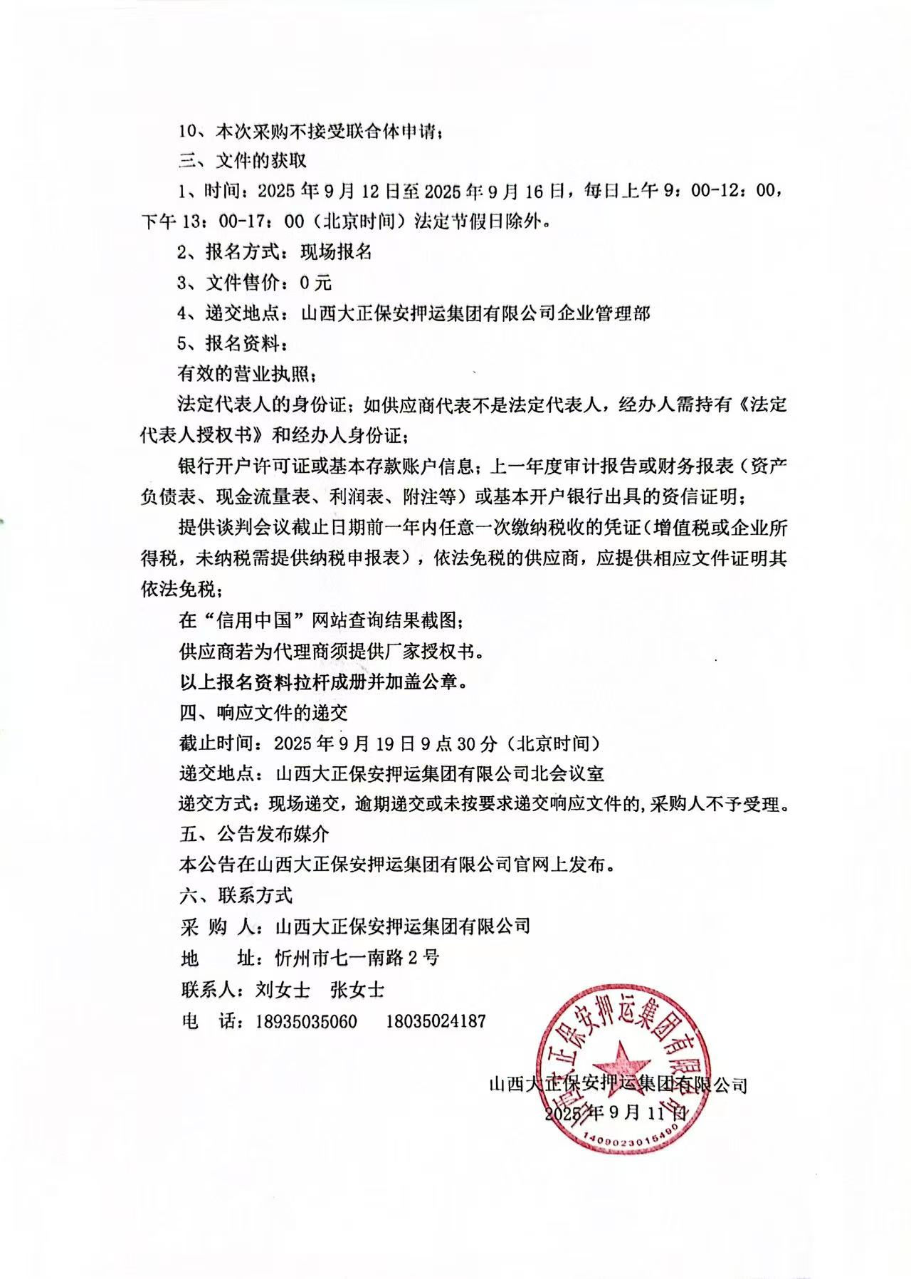 山西大正保安押運集團有限公司 > 通知公告 > 文章內(nèi)容