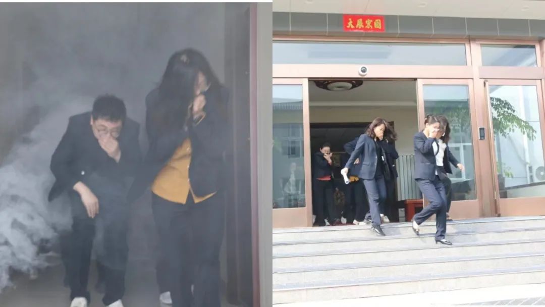 隨著煙霧的升起、消防報警聲的響起,各樓層人員快速、有序地捂住口鼻、彎下身體,快步有序的撤離到辦公樓前安全地帶,隨后,安全保衛(wèi)部清點人數(shù),確保無一人遺漏,整個演練過程緊張有序。演練人員沒有絲毫的慌亂,達(dá)到了預(yù)期的效果。