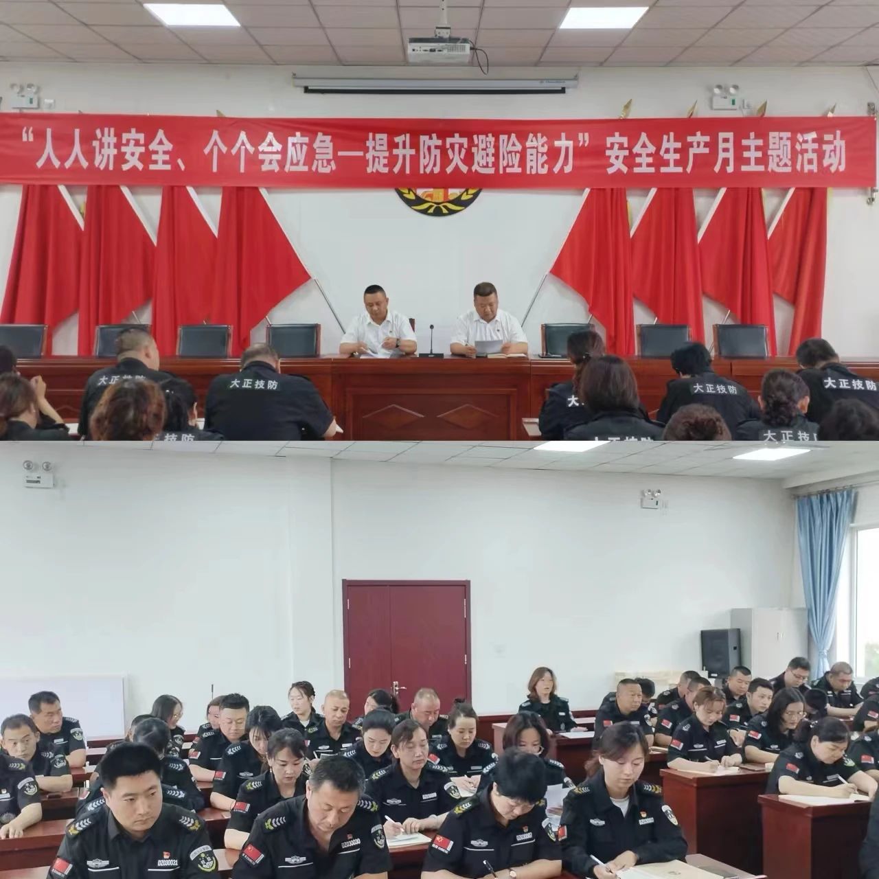 集團(tuán)公司著力組織開展“安全生產(chǎn)月”專項(xiàng)主題活動,聚焦“暢通生命通道”這一主要內(nèi)容,持續(xù)深入推進(jìn)安全生產(chǎn)知識宣傳,通過技能素質(zhì)培訓(xùn)演練(新辦保安員證、持槍證培訓(xùn))、理論知識講解、實(shí)操技能訓(xùn)練、實(shí)戰(zhàn)模擬演練與集團(tuán)公司組織觀看安全警示教育視頻等多種方式相結(jié)合的專項(xiàng)活動,讓隊(duì)員熟練掌握消防、反恐、急救等專業(yè)技能。理論知識學(xué)習(xí)不斷提升自身安保團(tuán)隊(duì)在風(fēng)險防范、安全應(yīng)急意識和自救互救等方面的能力,在公司內(nèi)部、客戶單位及全社會積極營造關(guān)心安全、參與安全、呵護(hù)安全、共筑安全的濃厚氛圍,攜手推動生產(chǎn)環(huán)境安全有序的高質(zhì)量發(fā)展。