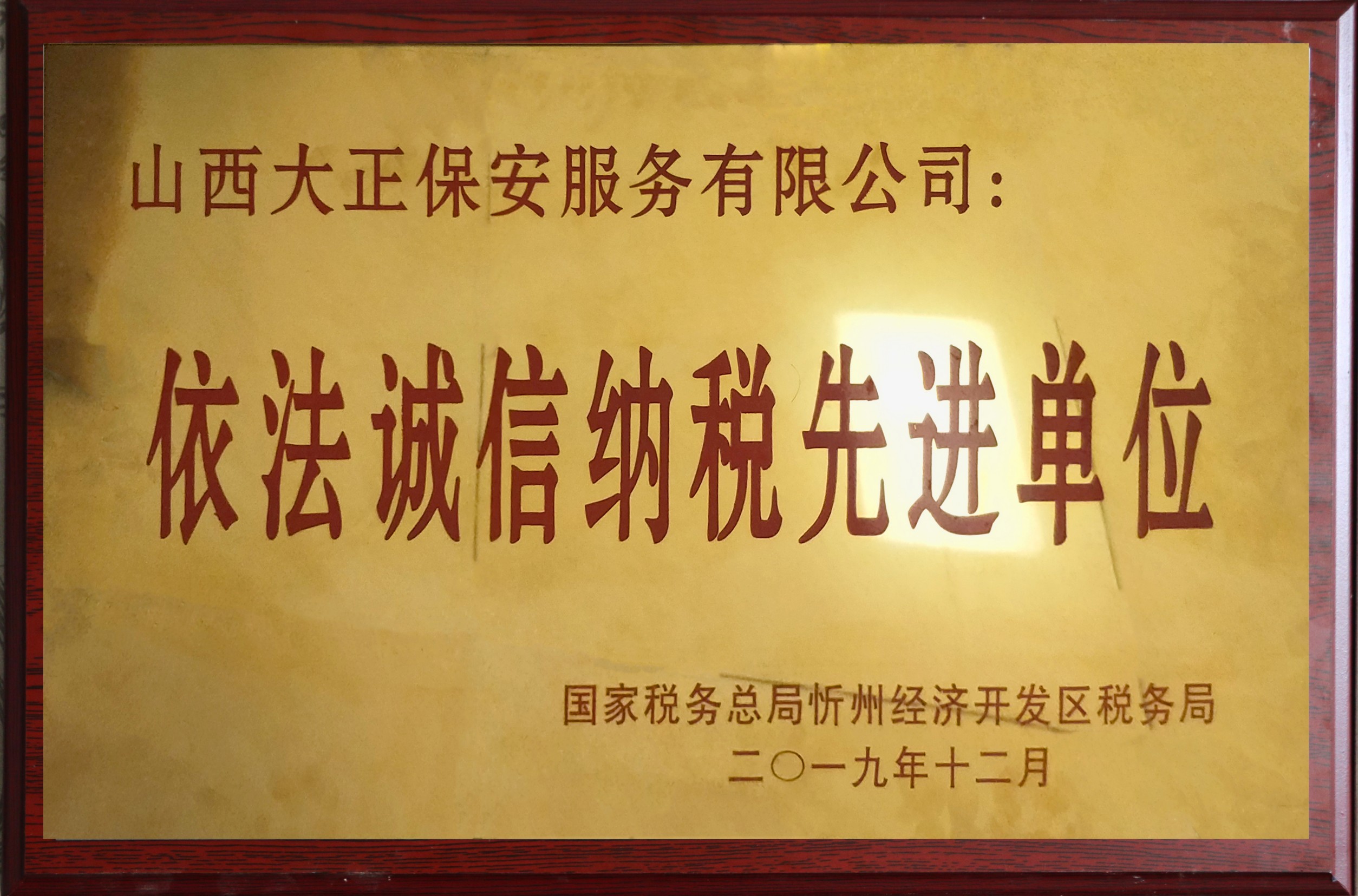 12月15日,國(guó)家稅務(wù)總局忻州經(jīng)濟(jì)開發(fā)區(qū)稅務(wù)局舉行2019年度“依法誠(chéng)信納稅先進(jìn)單位”頒獎(jiǎng)儀式。山西大正保安服務(wù)(集團(tuán))有限公司等9家企業(yè)榮獲2019年度“依法誠(chéng)信納稅先進(jìn)單位”稱號(hào)。集團(tuán)公司黨委委員、副總經(jīng)理趙培宏代表公司參加儀式并上臺(tái)領(lǐng)獎(jiǎng)。