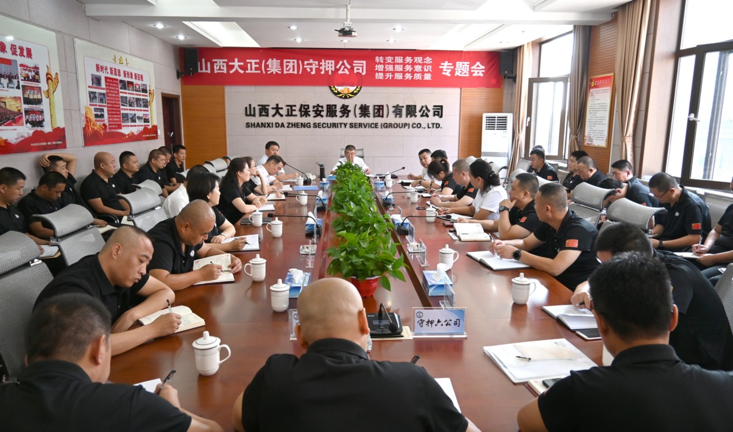 7月21日上午,山西大正(集團(tuán))守押公司召開(kāi)轉(zhuǎn)變服務(wù)觀念、增強(qiáng)服務(wù)意識(shí)、提升服務(wù)質(zhì)量專題會(huì)議。集團(tuán)公司黨委書(shū)記、董事長(zhǎng)張躍生出席并做重要講話。黨委副書(shū)記、總經(jīng)理趙培宏主持會(huì)議。黨委委員、副總經(jīng)理王明生,總經(jīng)理助理、辦公室主任宋林兔,總經(jīng)理助理、守押公司副總經(jīng)理寇星云、守押公司其他領(lǐng)導(dǎo)及集團(tuán)公司一室七中心負(fù)責(zé)人,基層分公司、中隊(duì)負(fù)責(zé)人四十余人參加。